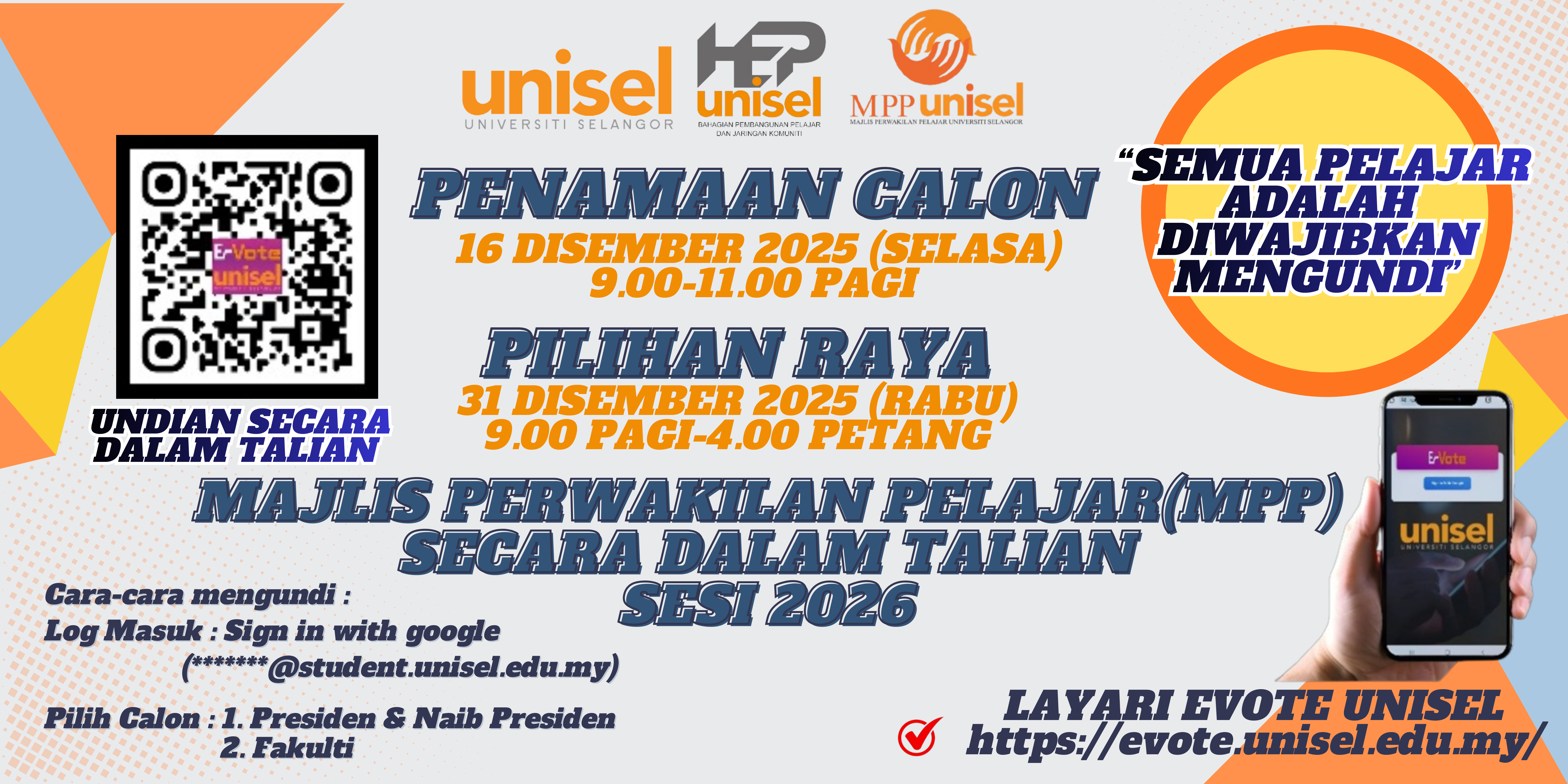 • new Memo HEP | UNISEL - Notis Pembubaran Majlis Perwakilan Pelajar (MPP) UNISEL Sesi 2025 (Updated on 26 Nov, 2025)